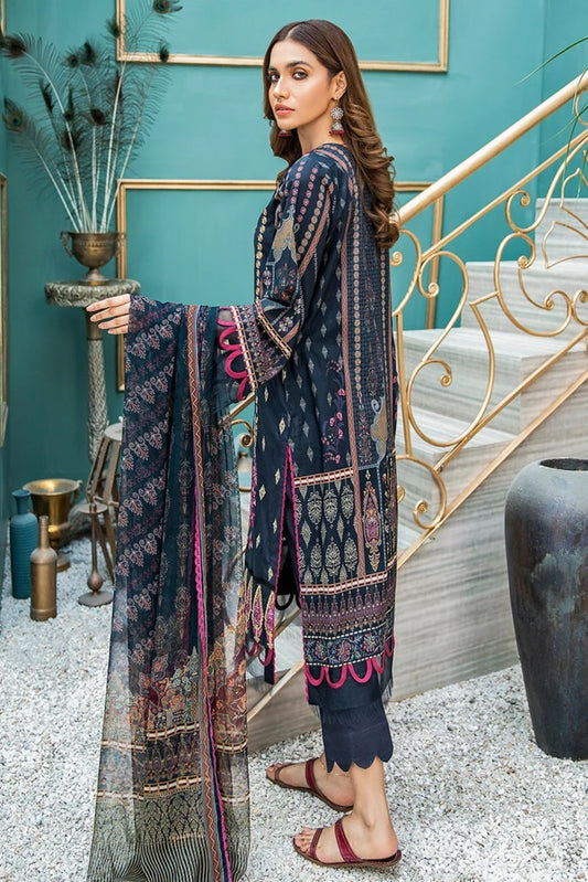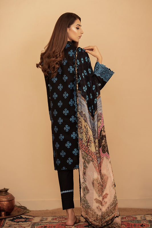 Aabyaan Luxury Embroidered Lawn Unstitched 3 Piece Suit - AL 03 - SIYAH