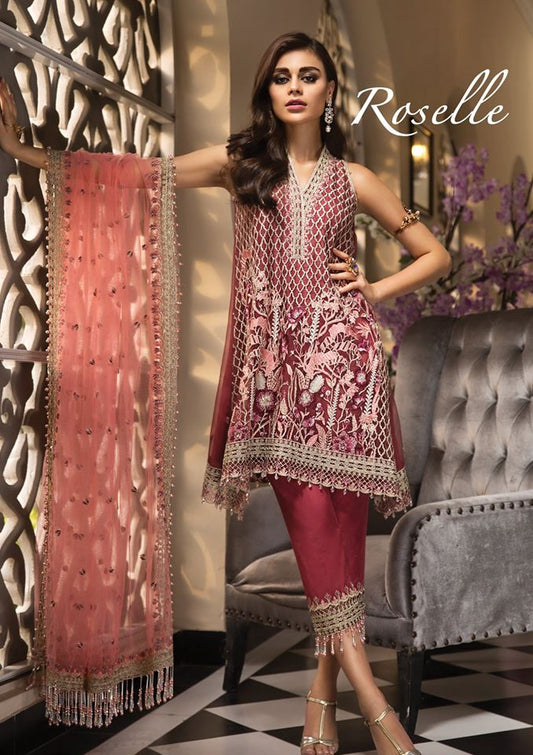 Anaya Festive Embroidered Organza Unstitched 3 piece Suit - 05 Roselle