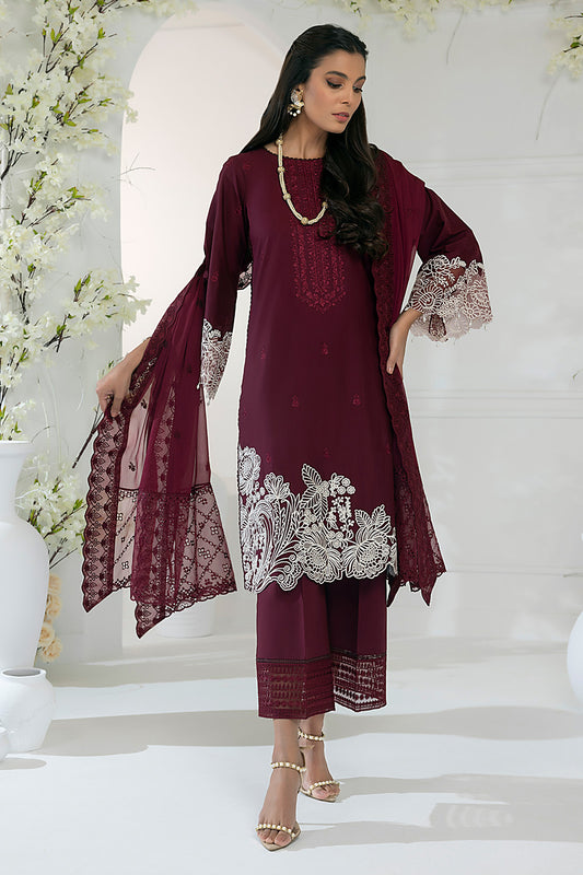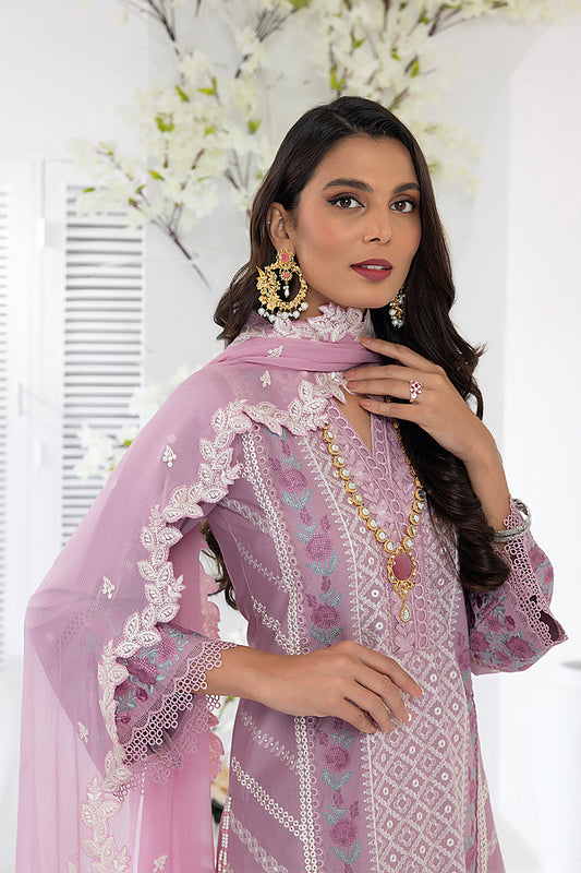 Ensembles Chiffon by Azure Embroidered Chiffon 4 Piece Unstitched Dress - ES025 Orchid Flame