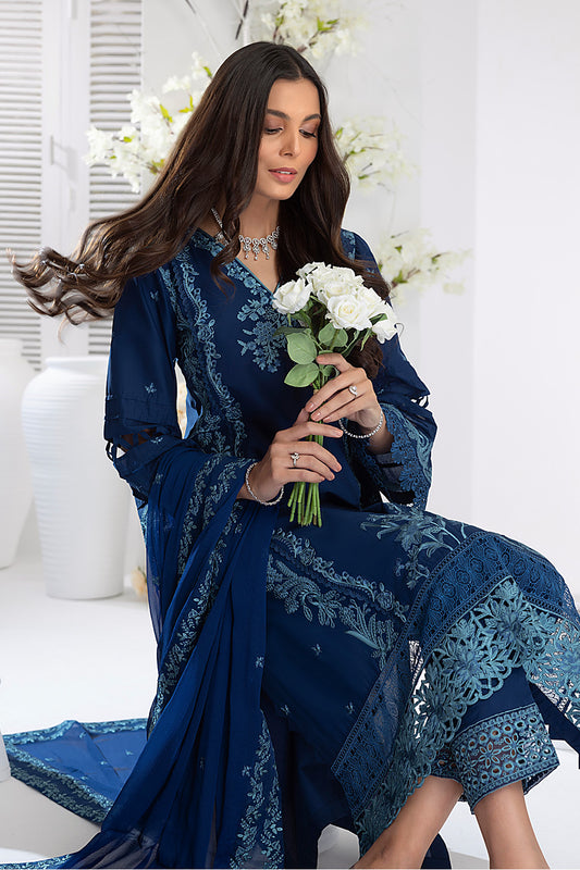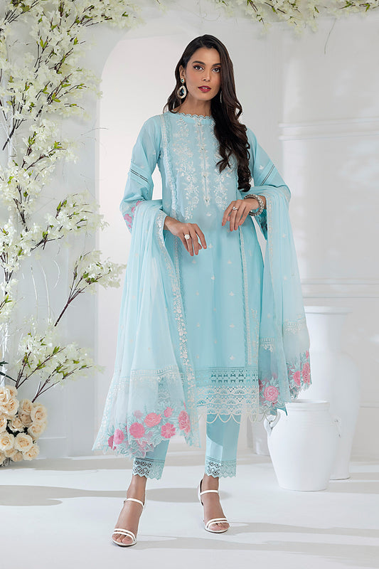 Ensembles By Azure Embroidered Chiffon Suits Unstitched 4 Piece AZES - 101 Cerulean
