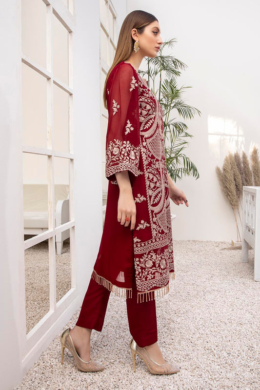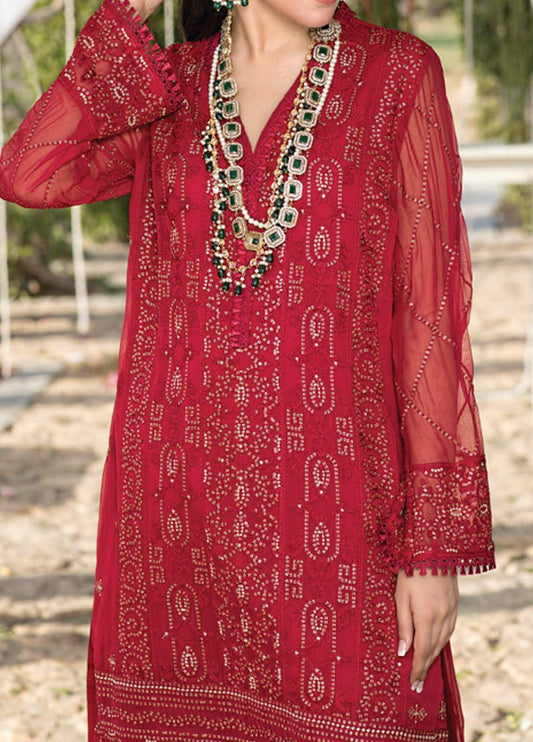 Azure Embroidered Chiffon Unstitched Kurties AZK - 01 Glittery Red