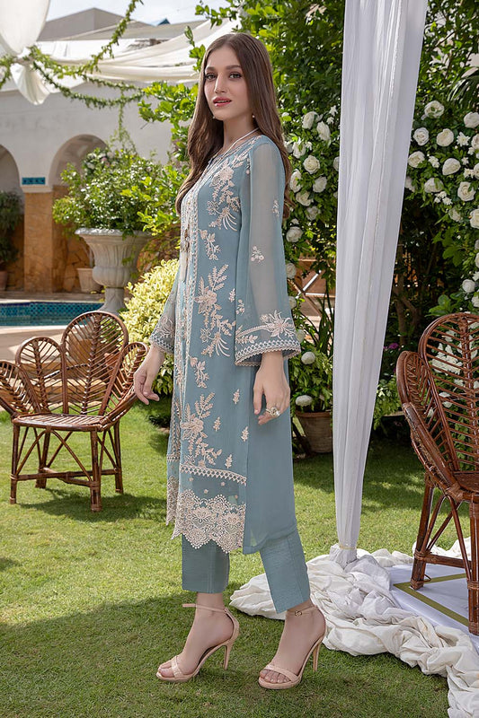 Azure Embroidered Chiffon Suits Unstitched 3 Piece AS-99a Floresecene