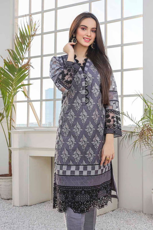 Azure Luxury Embroidered Organza 1 piece Unstitched Kurti - Charcoal Shadow