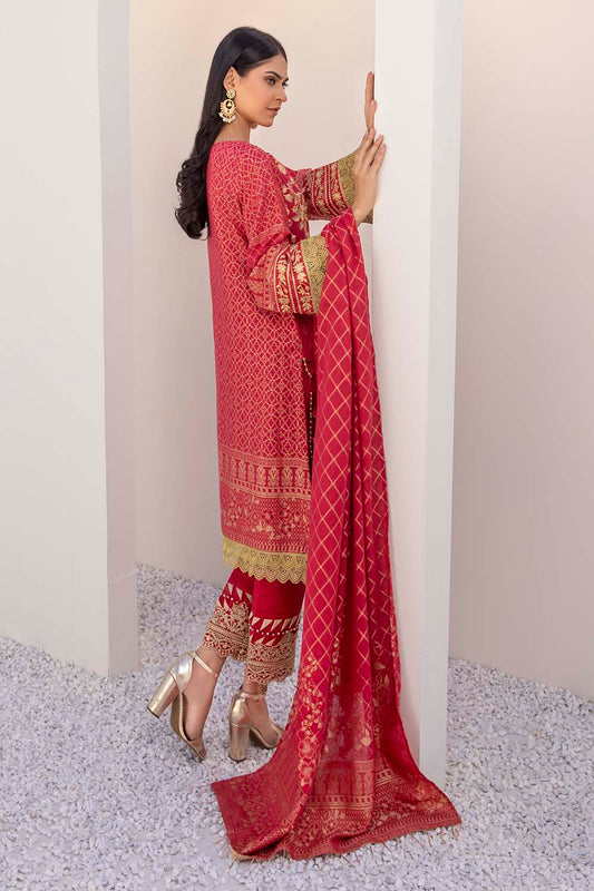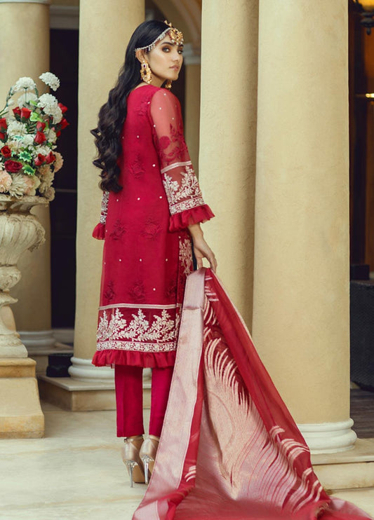 Azure Luxe Embroidered Chiffon 3 Piece Unstitched Suit - D-4 Eternity Rouge
