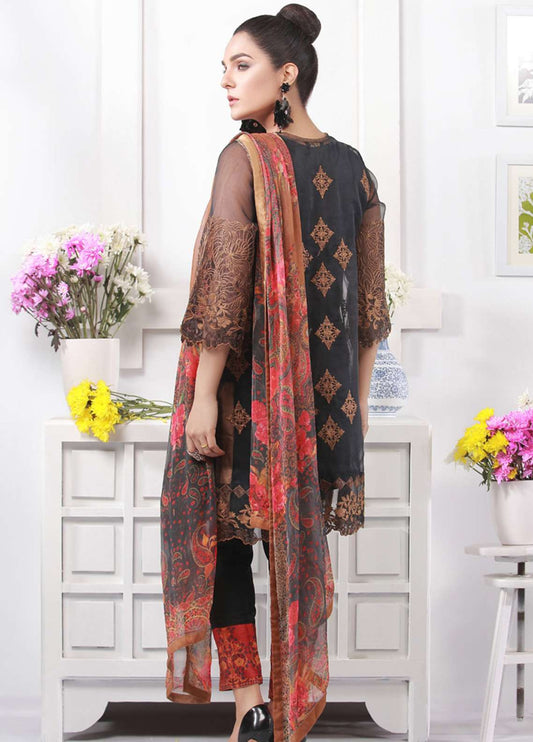Azure Festive Embroidered Organza 3 Piece Unstitched Suit - D 03 - Blooming Fire