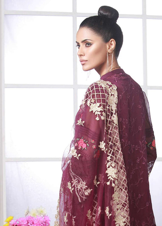 Azure Luxe Embroidered Chiffon 3 Piece Unstitched Suit - D-8 Berry Flake