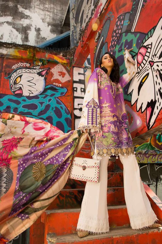 Crimson Embroidered Lawn Suits Unstitched 3 Piece Cross Stitch Nostalgia - 8B - Maya