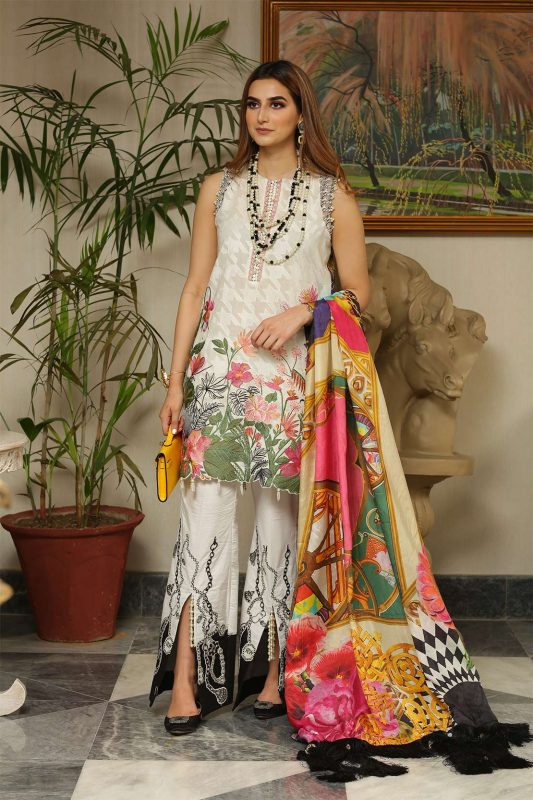 Crimson Luxury Embroidered Lawn Unstitched 3 Piece Suit – 4B