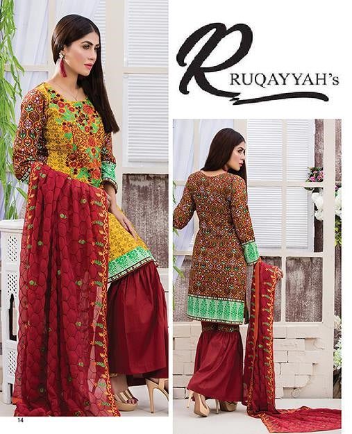 Elegance by Ruqayyah Cotton Embroidered 3 Piece Unstitched Dress - 3A