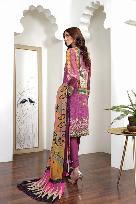 Rang Rasiya Zoya Embroidered Lawn Unstitched 3 piece Suit - D611 Blooming Magenta
