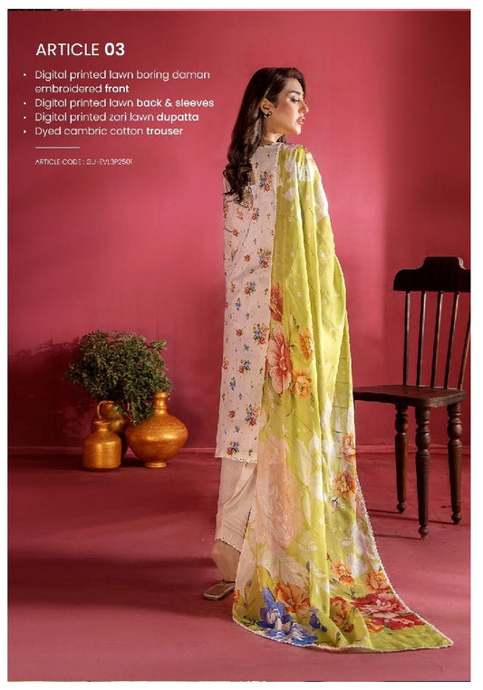 Evelyn by Gulljee Embroidered Lawn 3 piece Unstitched Dress - EVL3P2503