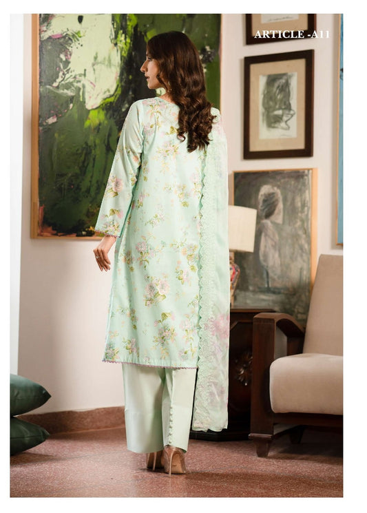 Mishaal by Gulljee Embroidered Lawn 3 piece Unstitched Dress - GJM11 - A11 - Summer Collection