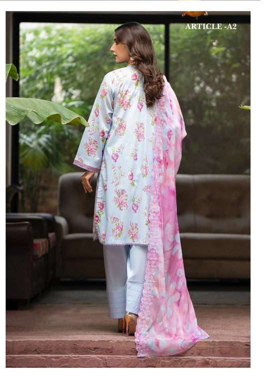 Mishaal by Gulljee Embroidered Lawn 3 piece Unstitched Dress - GJM11 - A10 - Summer Collection