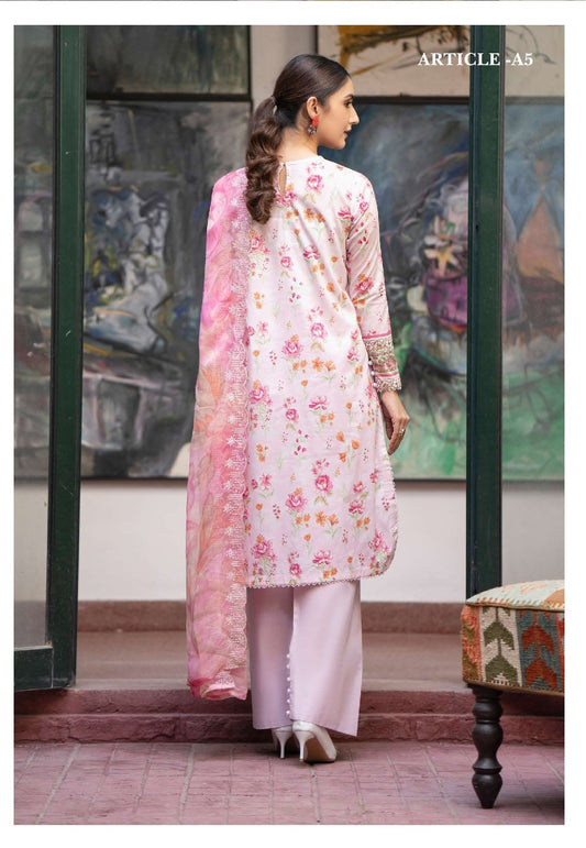 Mishaal by Gulljee Embroidered Lawn 3 piece Unstitched Dress - GJM11 - A05 - Summer Collection