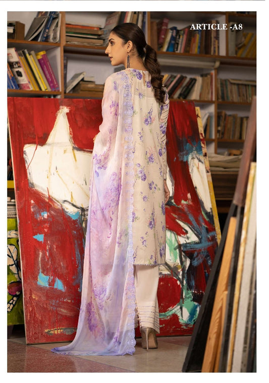 Mishaal by Gulljee Embroidered Lawn 3 piece Unstitched Dress - GJM11 - A08 - Summer Collection