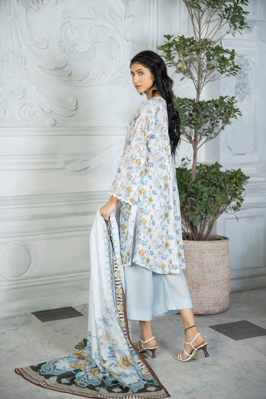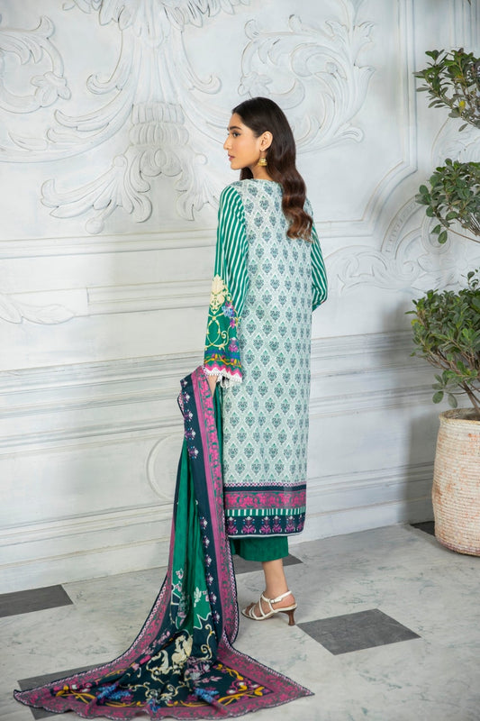 Ittehad German Embroidered Lawn Unstitched 3 Piece Suit - 9010 A