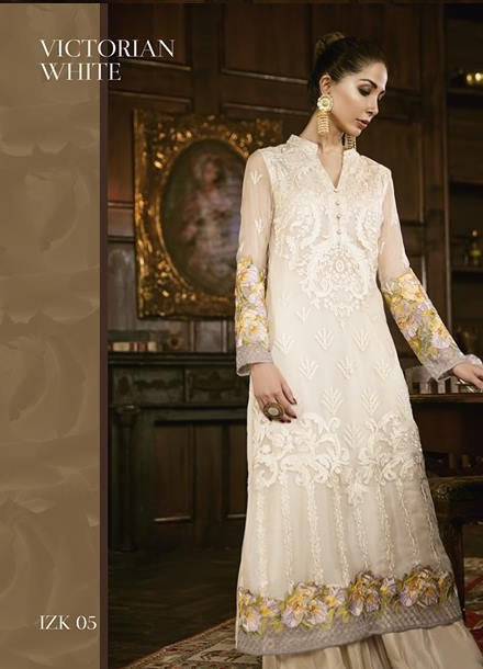 Iznik Luxury Embroidered Chiffon 3 piece Unstitched Dress – 05 Victorian White
