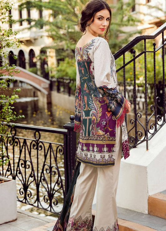Iznik Premium Embroidered Lawn Unstitched 3 Piece Suit - 01 Purple Whiteness