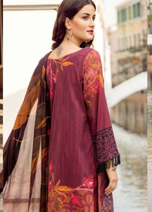 Iznik Embroidered Chiffon Unstitched 3 Piece Suit ID 08 Garnet Ash - Luxury Collection