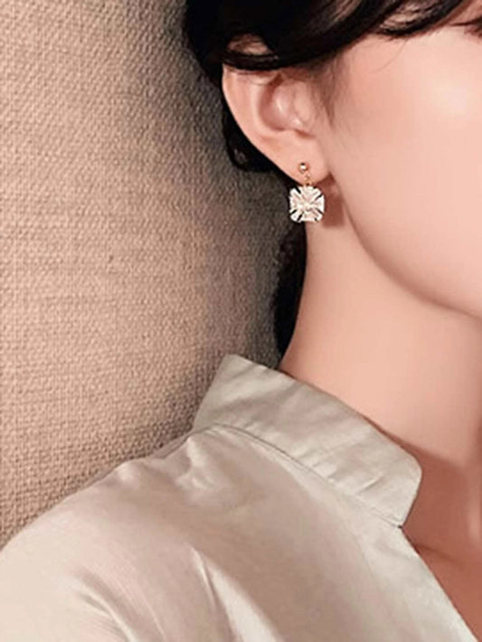 1pair Rhinestone Fancy Square Drop Earrings - HDJ 154