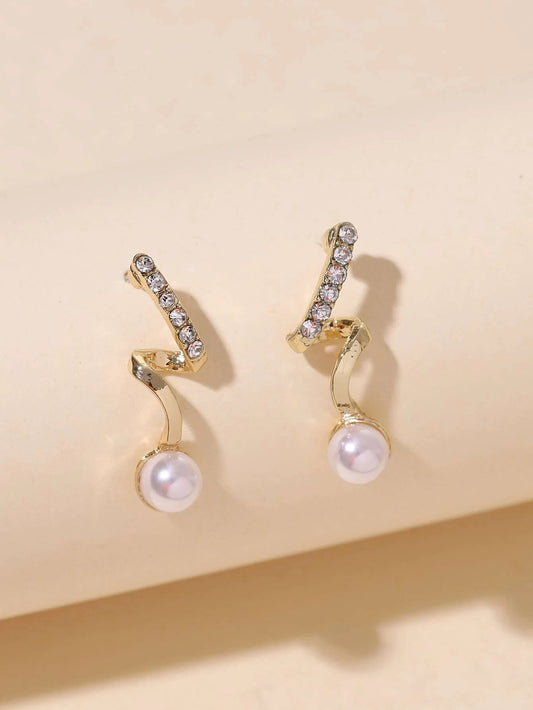 Rhinestone & Faux Pearl Decor Stud Earrings - HDJ 155