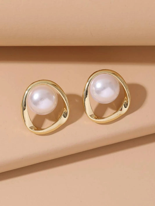 Faux Pearl & Rhinestone Stud Earrings - HDJ 038
