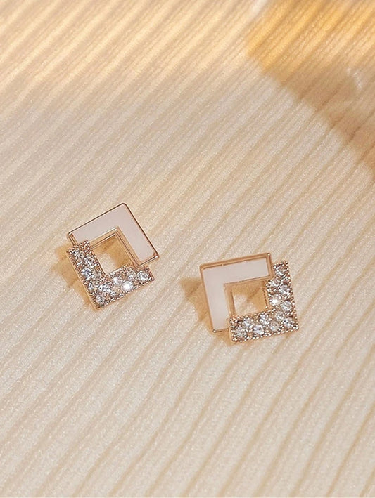 Rhinestone Geometric Drop Earrings - HDJ 053