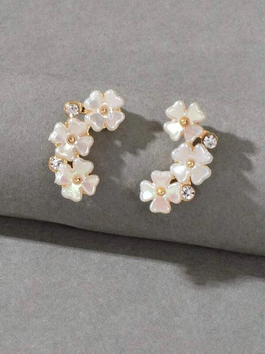 Rhinestone & Flower Style Stud Earrings - HDJ 042