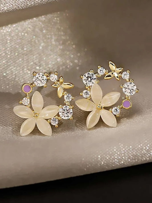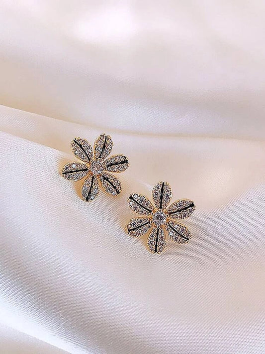 Rhinestone & Flower Style Stud Earrings - HDJ 013