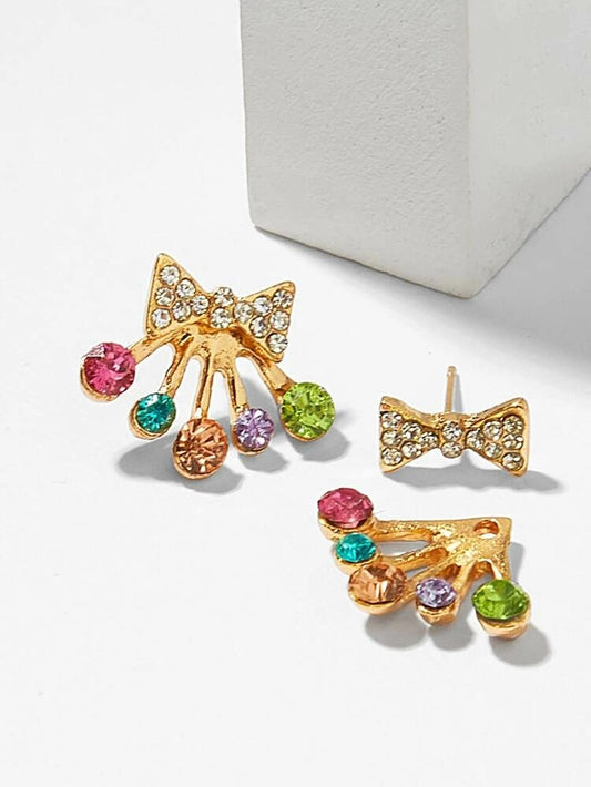 Bow Style Gemstone Stud Earrings - HDJ 014