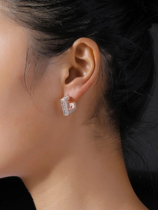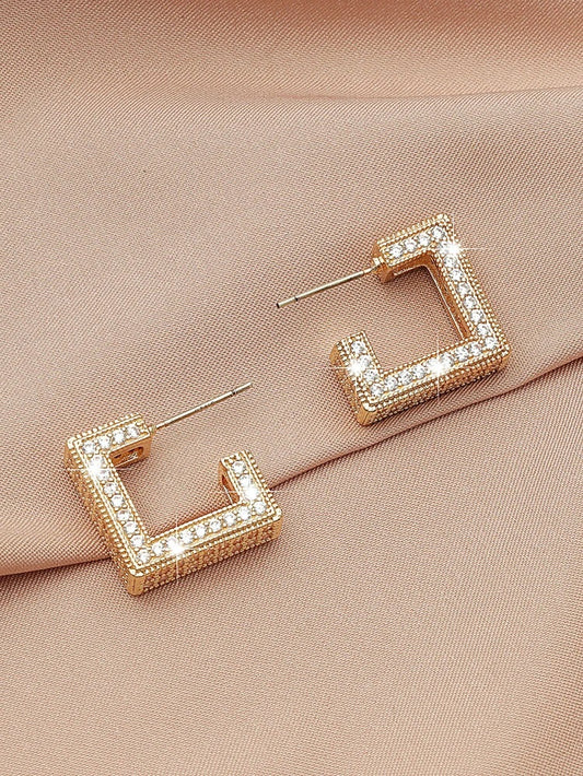 Geometric Style Rhinestone Open Hoop Earrings - HDJ 016