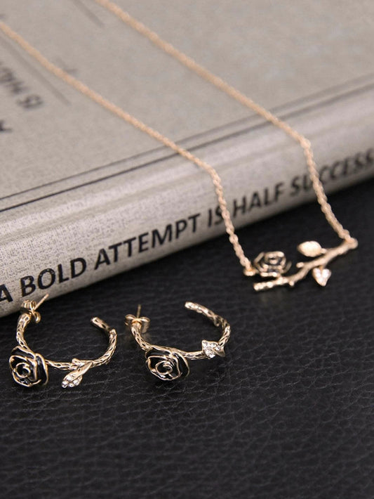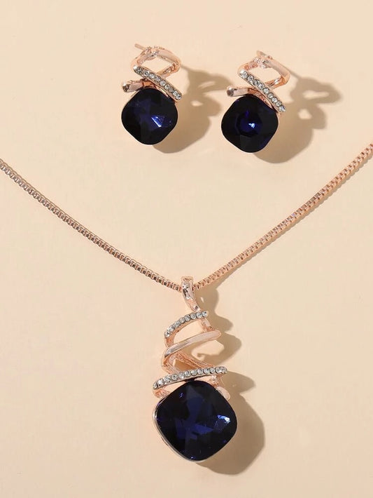 Rhinestone Decor Necklace & Stud Earrings- HDJ 018