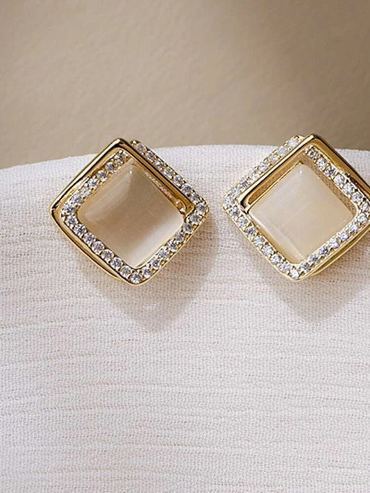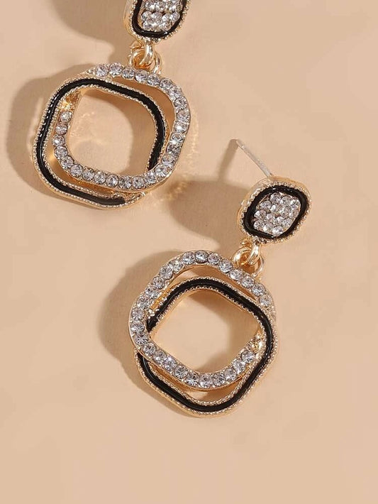 Rhinestone Stylish Geometric Hoop Earrings - HDJ 015