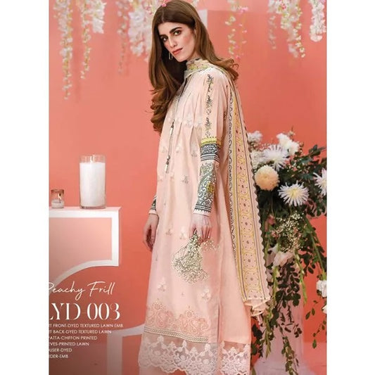 LSM Luxury Embroidered Lawn Unstitched 3 Piece Suit - LYD 003