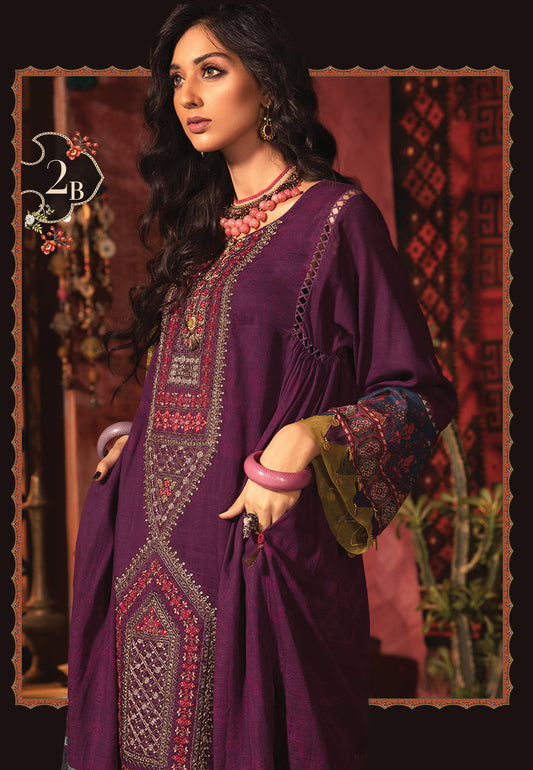 Maria B MPrint Embroidered Khaddar 3 Piece Unstitched Dress with Silk Dupatta - MPW 2b