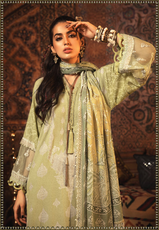 Maria B MPrint Embroidered Khaddar 3 Piece Unstitched Dress with Silk Dupatta - MPW 9a