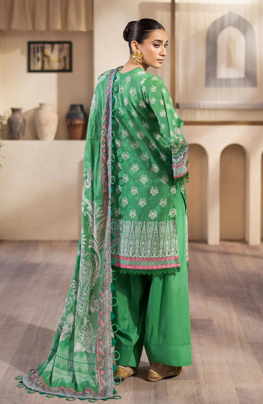 Mausummery Printed Linen 3 Piece Unstitched Dress - MPL-Emerald