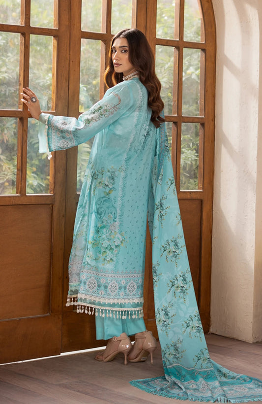 Mausummery Printed Linen 3 Piece Unstitched Dress - MPL-Amazonite