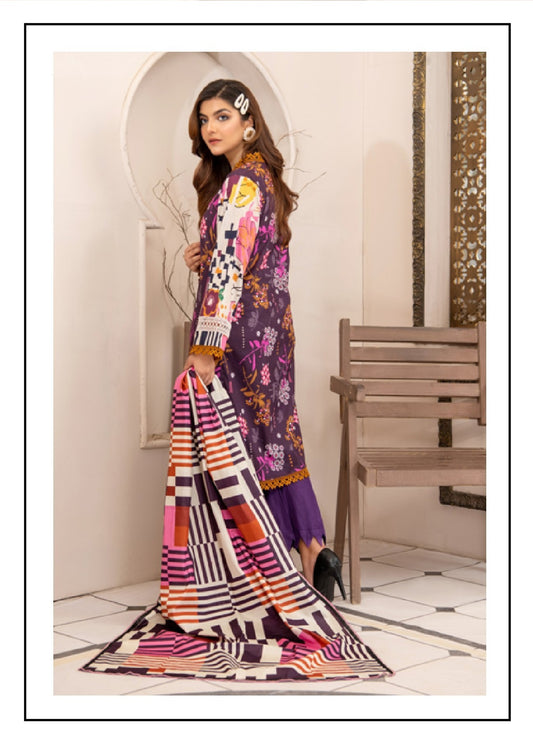 Mirah Digital Printed Lawn 3pc Unstitched Dress - D2