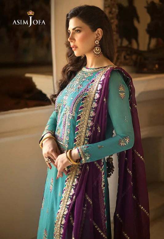 Asim Jofa Zari Sitara Embroidered Chiffon Unstitched 3 Piece Dress - AJZS 06