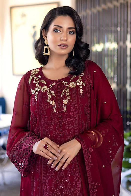 Ensembles By Azure Embroidered Chiffon Suits Unstitched 4 Piece AZES - 100 Antique Rouge