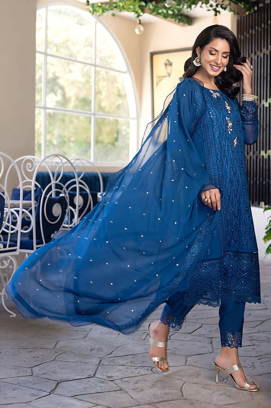 Ensembles By Azure Embroidered Chiffon Suits Unstitched 4 Piece AZES - 101 Cerulean
