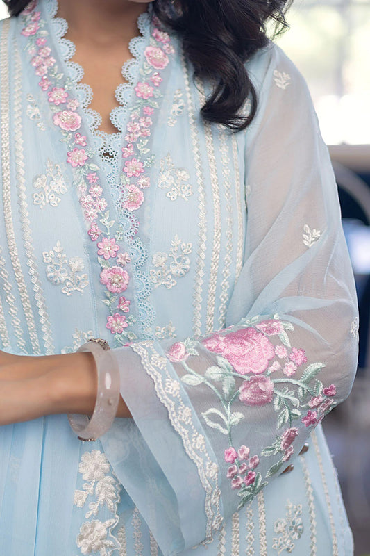 Ensembles By Azure Embroidered Chiffon Suits Unstitched 4 Piece AZES - 97 Sky Bloom