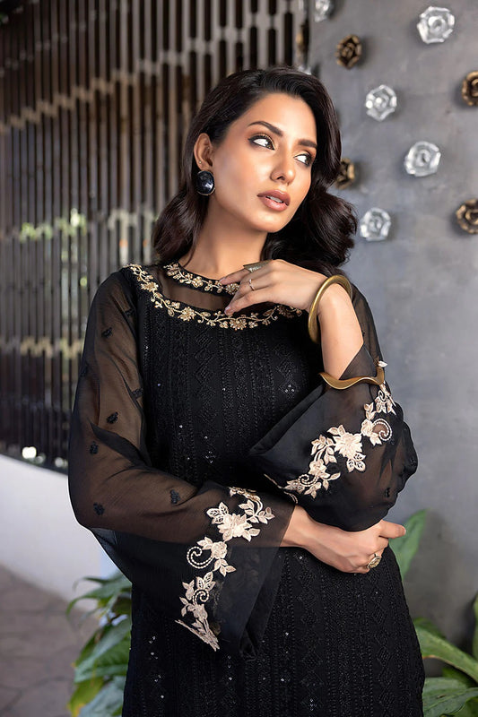 Ensembles By Azure Embroidered Chiffon Suits Unstitched 4 Piece AZES - 99 Dark Mystery