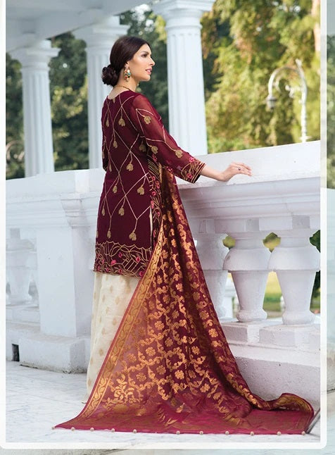 Noorma Kamal Embroidered Chiffon Unstitched 3 Piece Suit NK - 10 Oriental Poppy