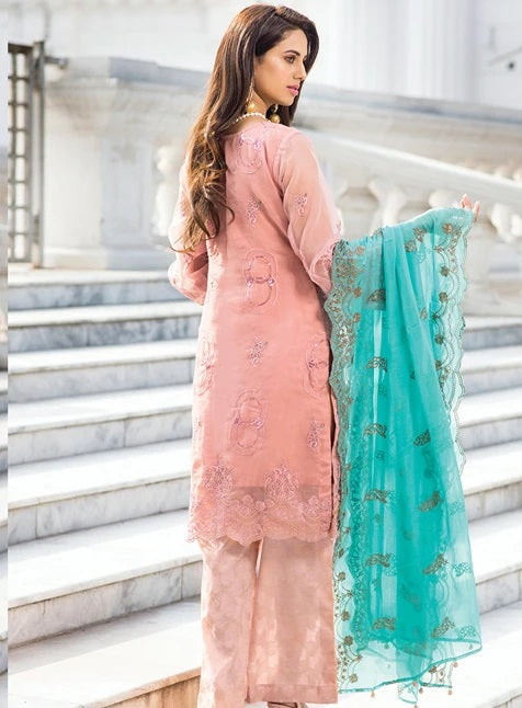 Noorma Kamal Embroidered Organza Unstitched 3 Piece Suit NK - 05 Peruvian Lily