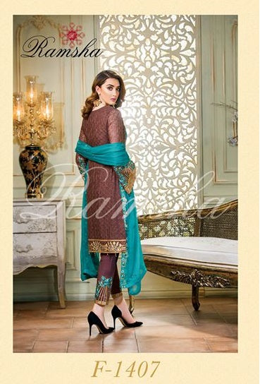 Chevron Embroidered Chiffon Suits by Ramsha Unstitched 3-Piece A-407