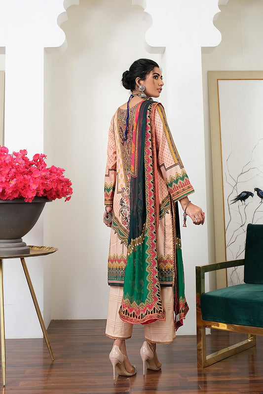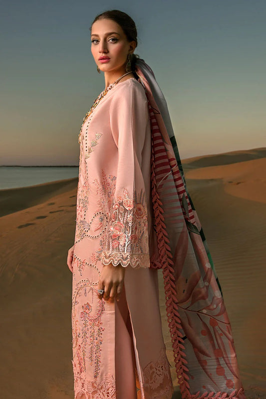 Rang Rasiya Zoya Embroidered Lawn Unstitched 3 piece Suit - D615 Peach Glory