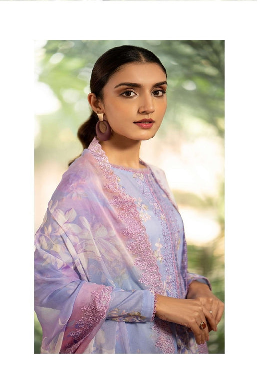 Mishaal by Gulljee Embroidered Lawn 3 piece Unstitched Dress - GJM11 - A09 - Summer Collection