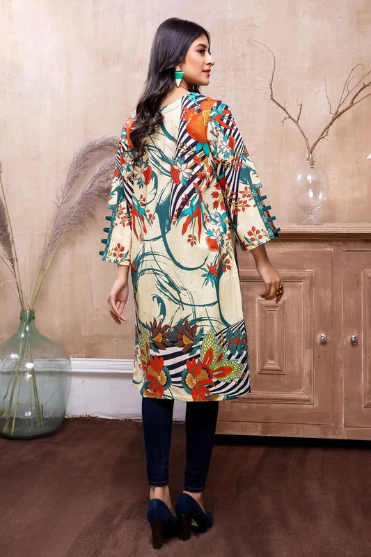 Adan Libas Printed Cambric Stitched Kurti - C1 06 Flowering Kale